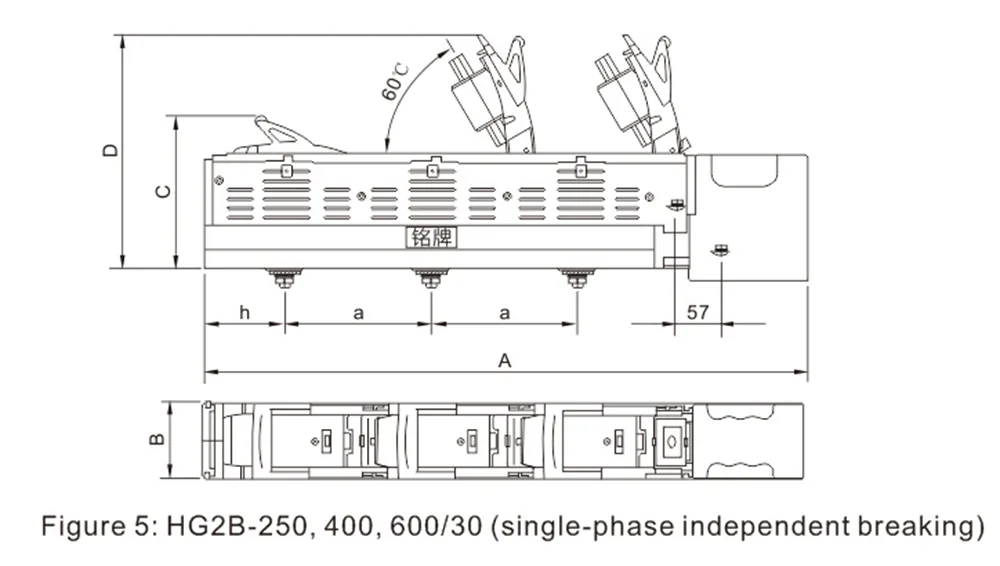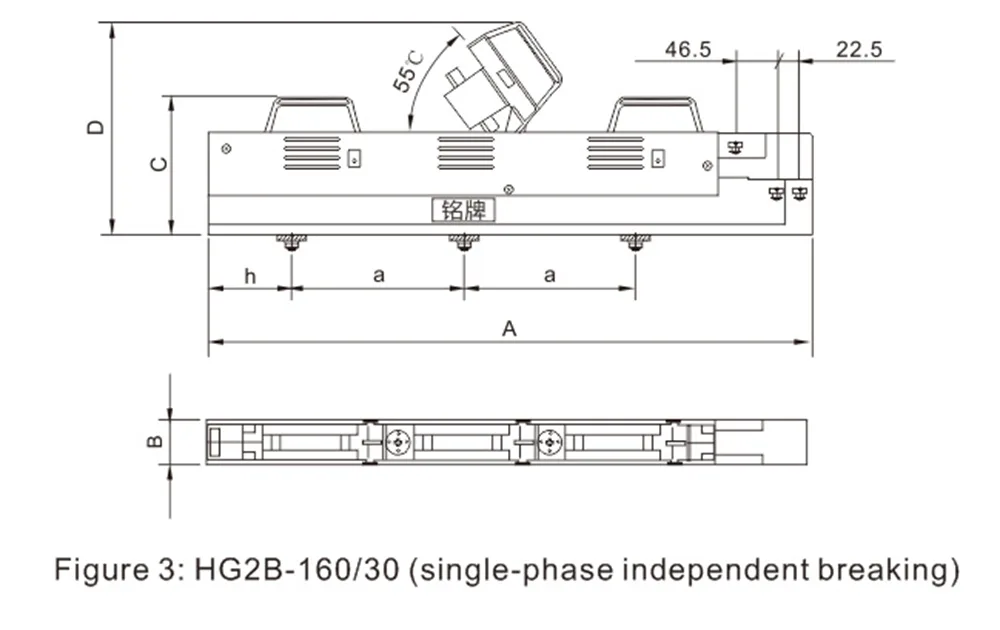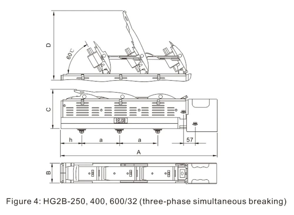 أبعاد المخطط التفصيلي والتركيب لأداة فصل مفتاح الصمامات المضمنة HG2B-160~630A.